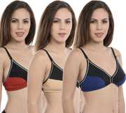 StyFun Premium Quality Bra Women Full Coverage Non Padded Bra (Blue, Maroon, Black)