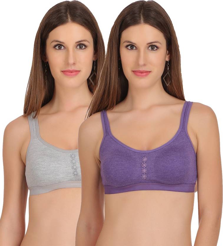 StyFun Women Sports Lightly Padded Bra (Purple, Grey)