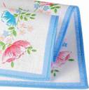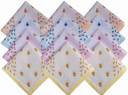 These handkerchiefs made from cotton.The pack includes 12 pieces of women's & kids handkerchiefs. Absorbency improves with each wash.floral printed on white base(the actual print may differ slightly with as shown in picture.. Excellent buy. super soft feel finish. Makes you wanting more & more.Go ahead & impress yourself