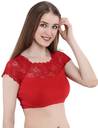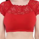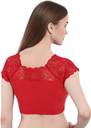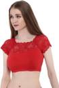 This is a new brocade readymade saree blouse. It is an Half sleeves blouse with net on the neck. This is a round neck type blouse. This is a ready to wear saree blouse that can be worn with any contrast coloured saree. Available in multiple colors & sizes. Fabric type: Cotton blend lycra.