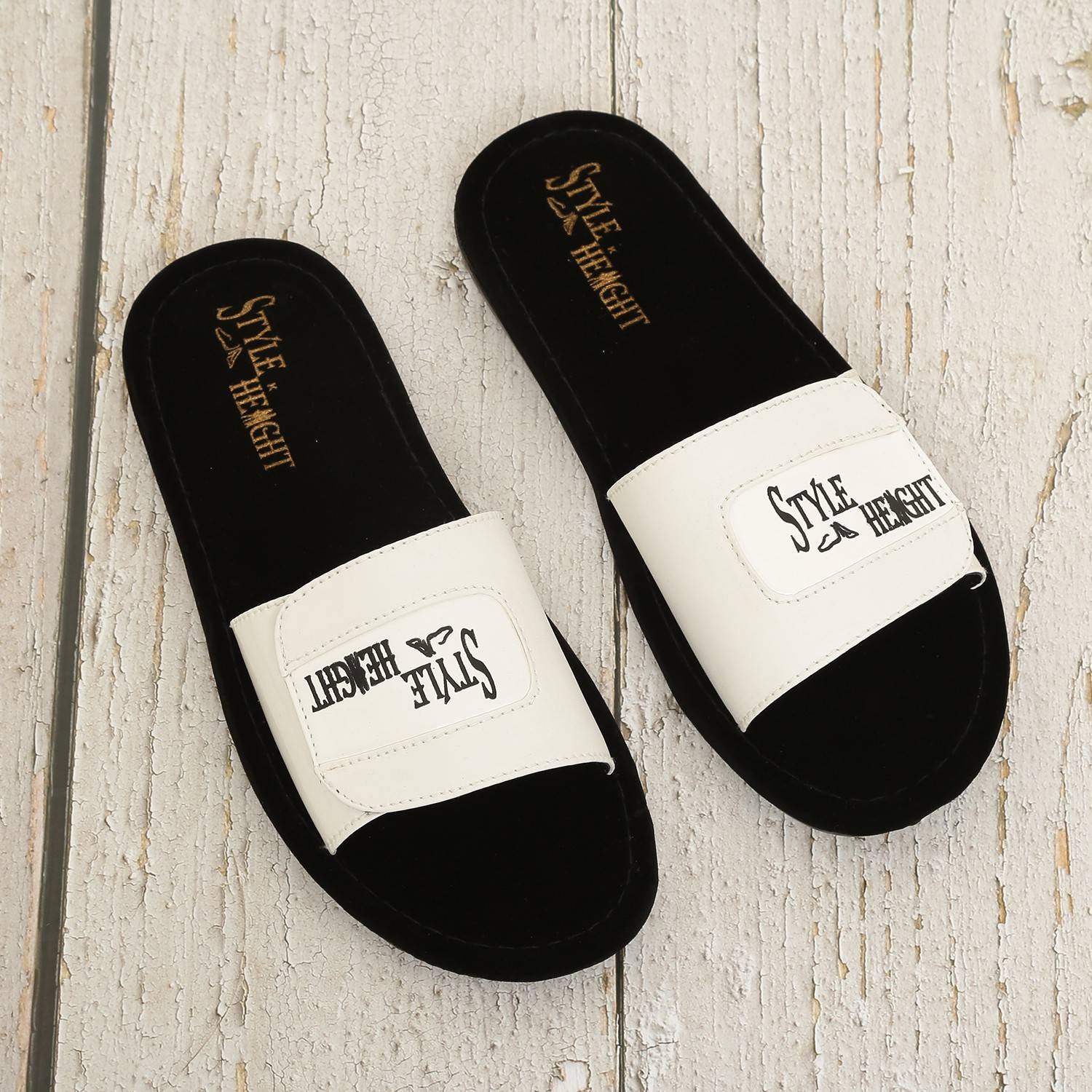 STYLE HEIGHT Men Slides (White , 7)