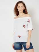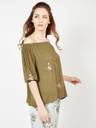 THE STYLE IVY Casual Regular Sleeve Embroidered Women Dark Green Top