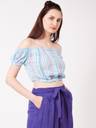 THE STYLE IVY Casual Short Sleeve Printed Women White, Blue Top