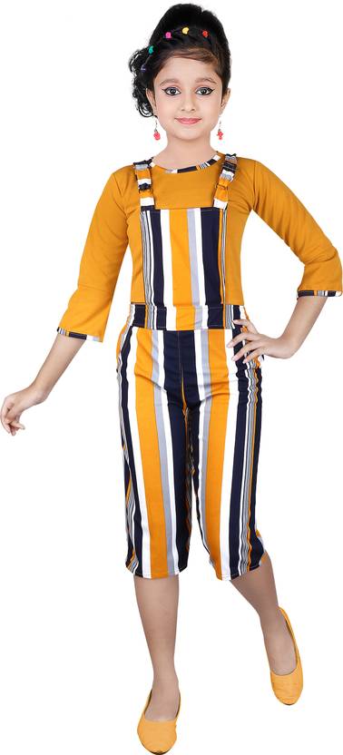 Style Junction Girls Party(Festive) Dungaree Pant (MUSTARD)