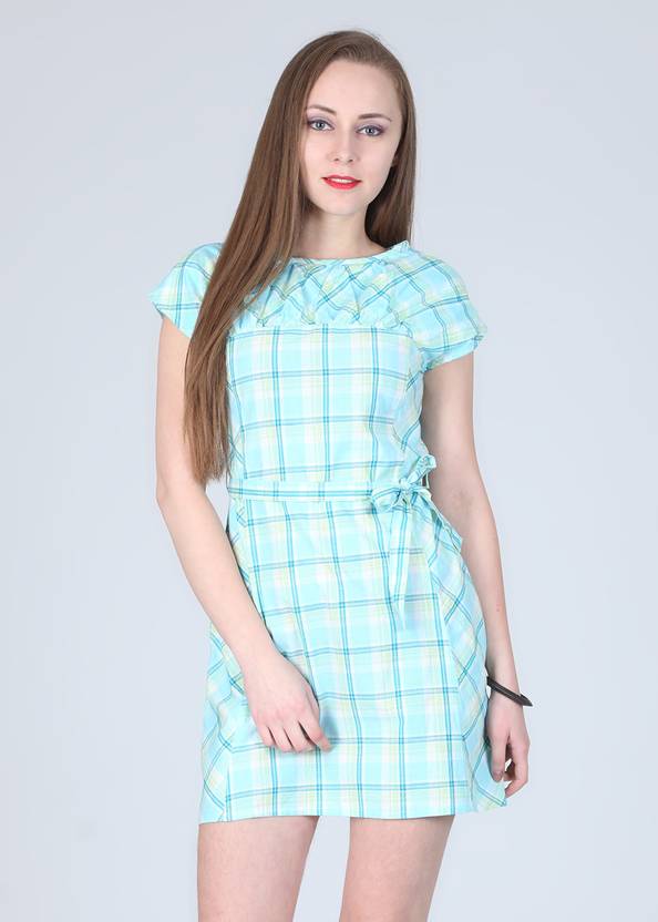 A pretty pick for a casual evening out with friends, this blue and green checkered shift dress from Style Quotient by Noi works well with strappy heels. Designed with ribbon tie-up detailing to give it an appealing touch, this mini cotton dress offers you unparalleled comfort.