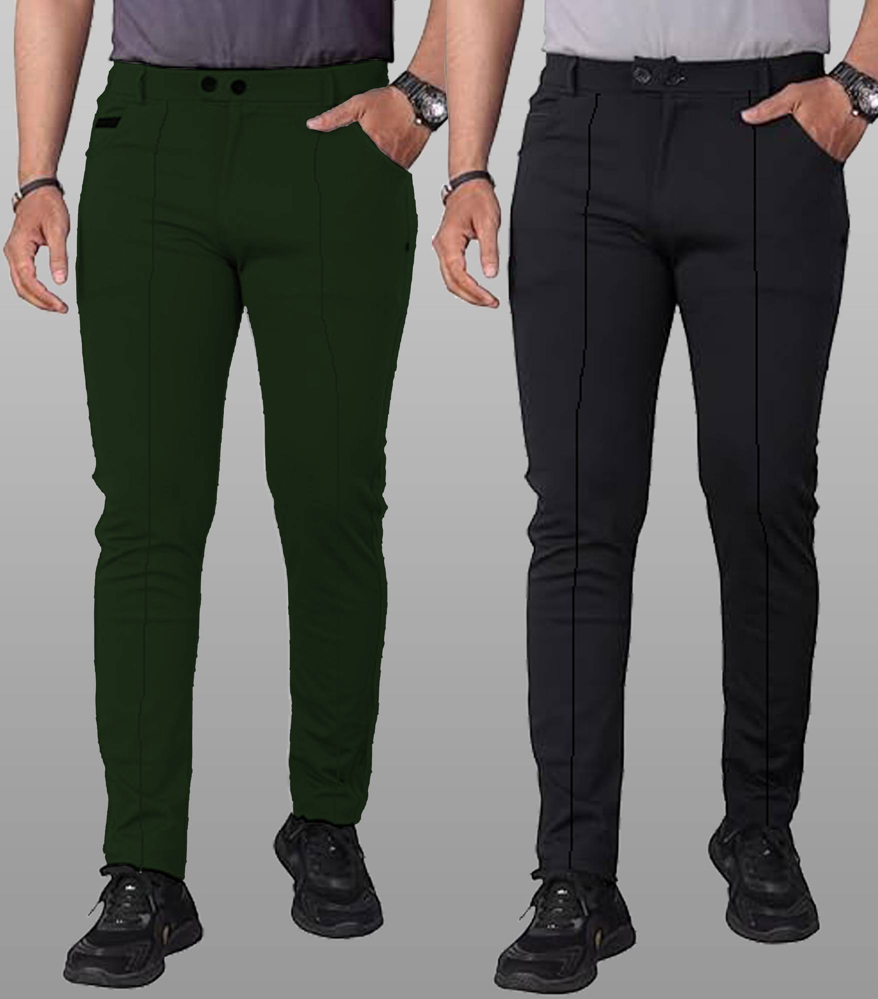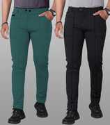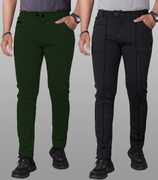 Pack of 2 Men Regular Fit Black Lycra Blend Trousers