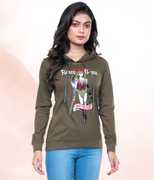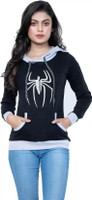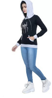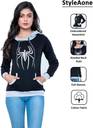 StyleAone Printed Women Hooded Neck Black T-Shirt