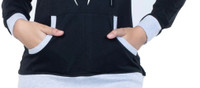 This T-shirt has a unique two-toned sweatshirt design that sets it apart from regular T-shirts. The contrasting shade on the hoodie, cuff, and bottom end of the jacket, as well as the pocket opening lining, adds an eye-catching visual appeal to the garment. This stylish design element adds a touch of playfulness and fashion-forwardness to the T-shirt.