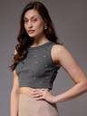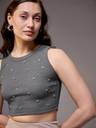 Product Details- Grey crop regular top Embellished Round neck, sleeveless, no sleeves Knitted cotton Material & Care Cotton Machine Wash Sleeve Length-Sleeveless Neck-Round Neck Type-Regular Print or Pattern Type-Embellished Sleeve Styling-No Sleeves Transparency-Opaque Length-Crop Fabric Type-Cotton Main Trend-New Basics Occasion-Casual Weave Type-Knitted Number of Items-1 Package Contains-1 top