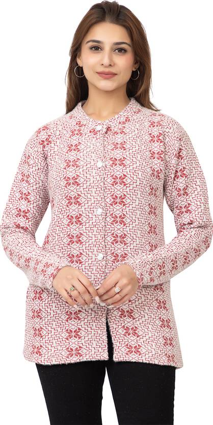 STYLEGOLD Floral Print V Neck Casual Women Red, White Sweater