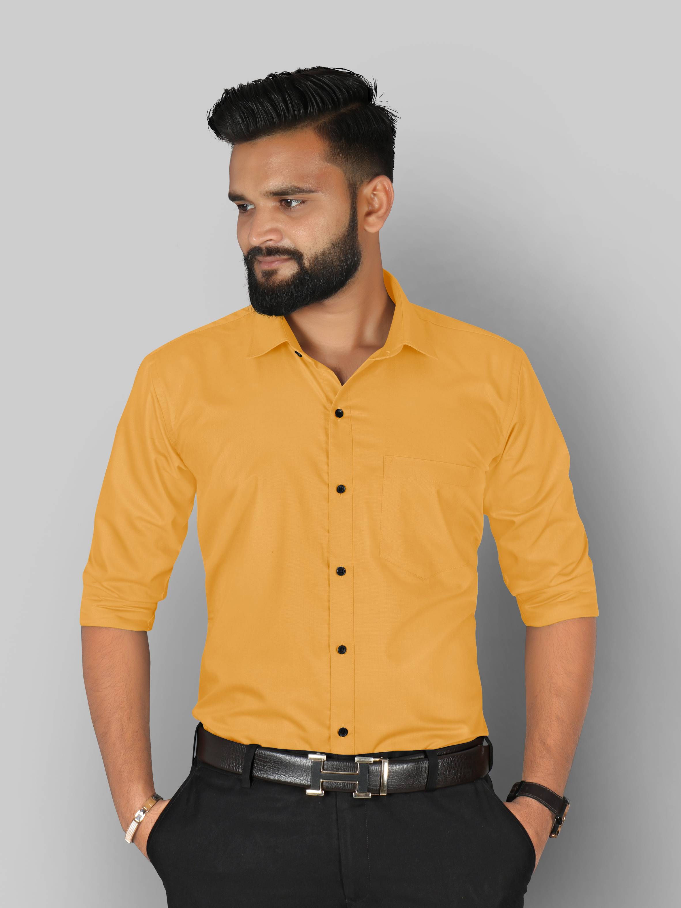 StyleMODO Men Solid Formal Yellow Shirt