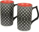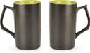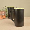 Delicately handmade in ceramic, this mug set of two beer/milk mugs with a lovely Black Matt on the outside and green throughout the inside. A solid long cylinderical body and simple elongated handle, make the perfect addition to any kitchen and table spaces as art pieces. This mug set is a perfect way to show off your classy choice with assorted design that represents you and enjoy your beverage at the same time! Crafted from premium quality of clay, this mugs are perfect choice for colde beer, hot cocoa or other bevarages. Best suited for a casual serving.