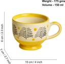 This eye catching hand painted Cup is a fusion of Modern Design with the century old art of studio pottery practiced by skilled artisans of Khurja , Uttar Pradesh , India. Each cup is carefully hand-painted by skilled artisans, making each piece a unique work of art. The hand-painted design ensures that no two cups are exactly alike, adding a personal touch to your tea or coffee experience.Even when not in use , the set will brighten up your kitchen with their hues. At StyleMyWay , we train and work with rural Indian Artisans to urbanize Indian Handicrafts and create lifestyle utility items. StyleMyway picks and brings the very best of Indian artistry and craftsmanship.