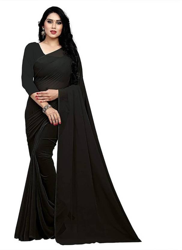 Solid/Plain Bollywood Lycra Blend Saree (Black)
