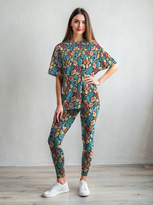 Unique Combination of Oversized Tshirt with High waist body shaping tummy tuck leggings. This set is made from stretchable fabric to make it comfortable and stylish and gives you an amazing confidence with its unique body shaping technology. This Athleisure set is suitable for travel, holidays, work from home, workout, gym, yoga and as an everyday essential.