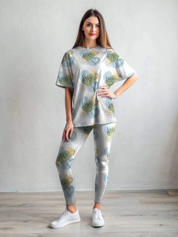 Unique Combination of Oversized Tshirt with High waist body shaping tummy tuck leggings. This set is made from stretchable fabric to make it comfortable and stylish and gives you an amazing confidence with its unique body shaping technology. This Athleisure set is suitable for travel, holidays, work from home, workout, gym, yoga and as an everyday essential.