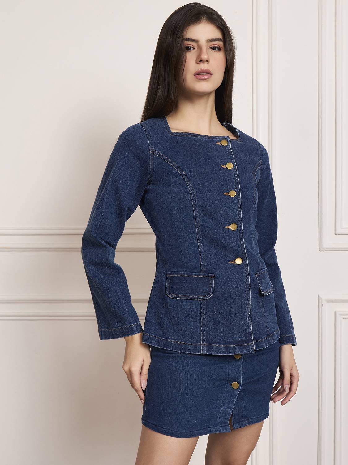 STYLESTONE Solid Single Breasted Casual Women Blazer (Blue)