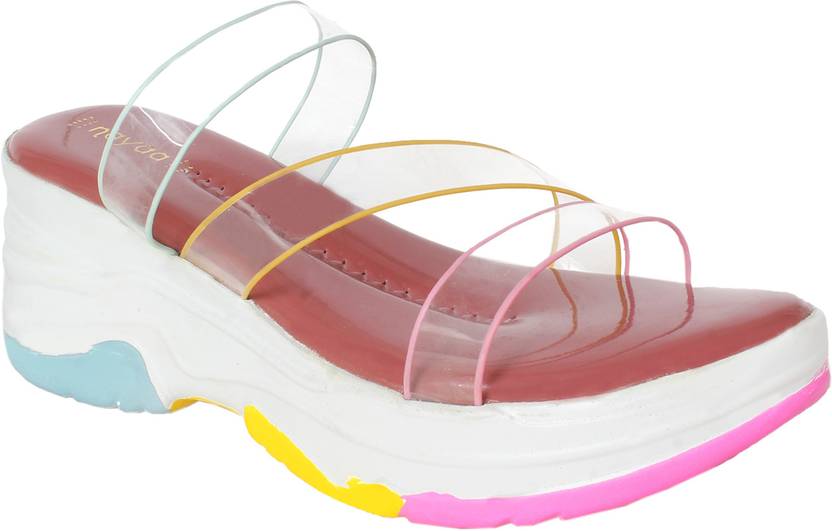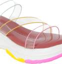 A Pair of Women Fashion PINK Round Toe Flatform Casual Slip-On With Heel Height 2.5 Inches. Open Back with Regular AnkleHeight.