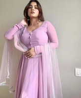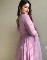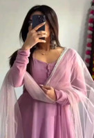 Crafted from georgette fabric, this set feels light against the skin and supports effortless draping. This fabric choice encourages airflow to ensure comfort across varying conditions. Moreover, soft texture allows the kurta, pants, and dupatta to fall smoothly, enhancing natural flow while maintaining structure. This reliable material quality supports repeated wear while retaining shape and finish.