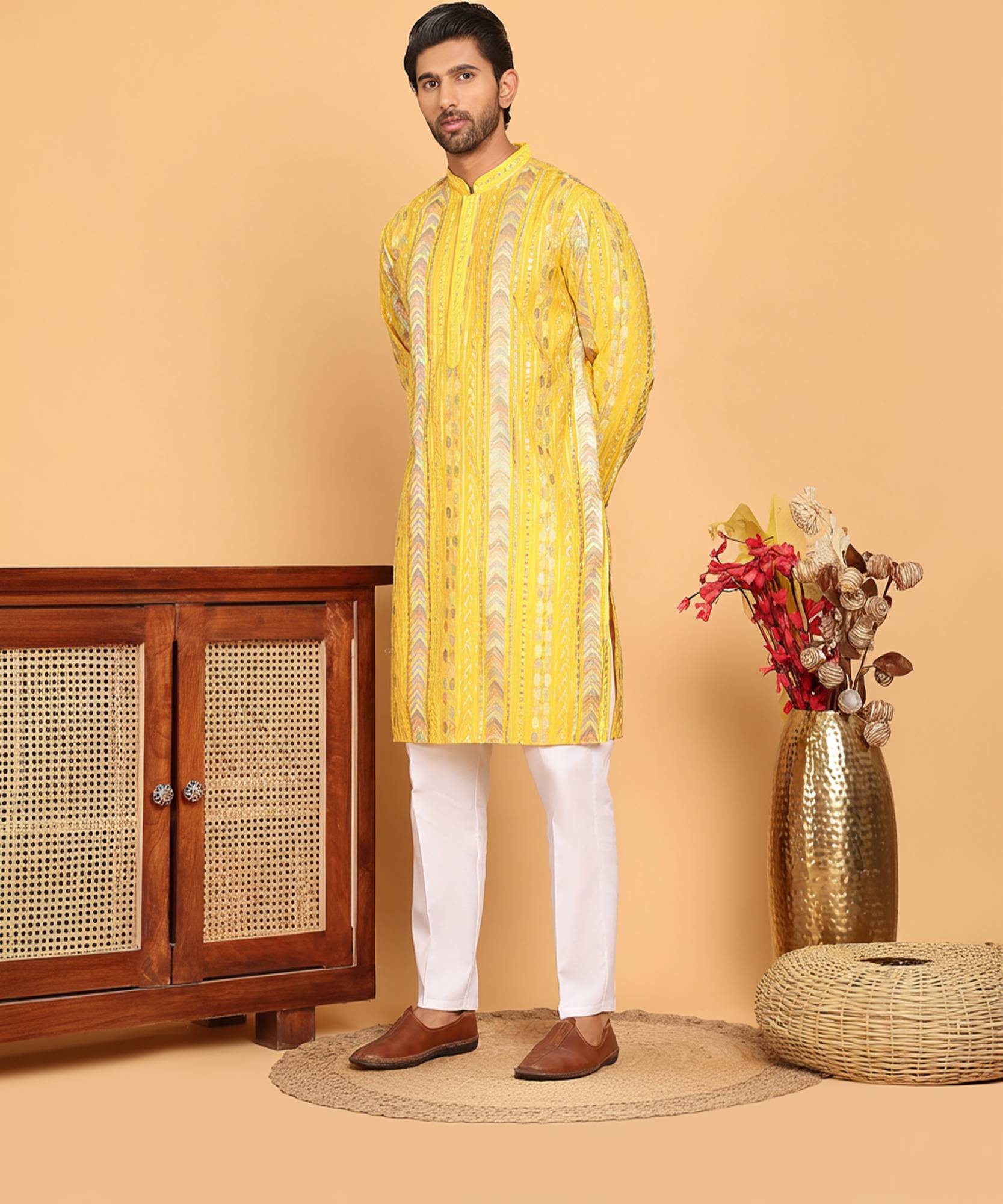 StyleVault Men Embroidered A-line Kurta (White)