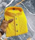 Elevate your ethnic wardrobe with our stunning Chikan Embroidered Work Kurta, made from viscose rayon fabric for a soft and breathable feel. This mandarin collar kurta features a stylish button-down front, full sleeves, and convenient side slits for ease of movement. With two practical pockets on the sides, it combines functionality with elegance, making it perfect for festive occasions or casual outings.