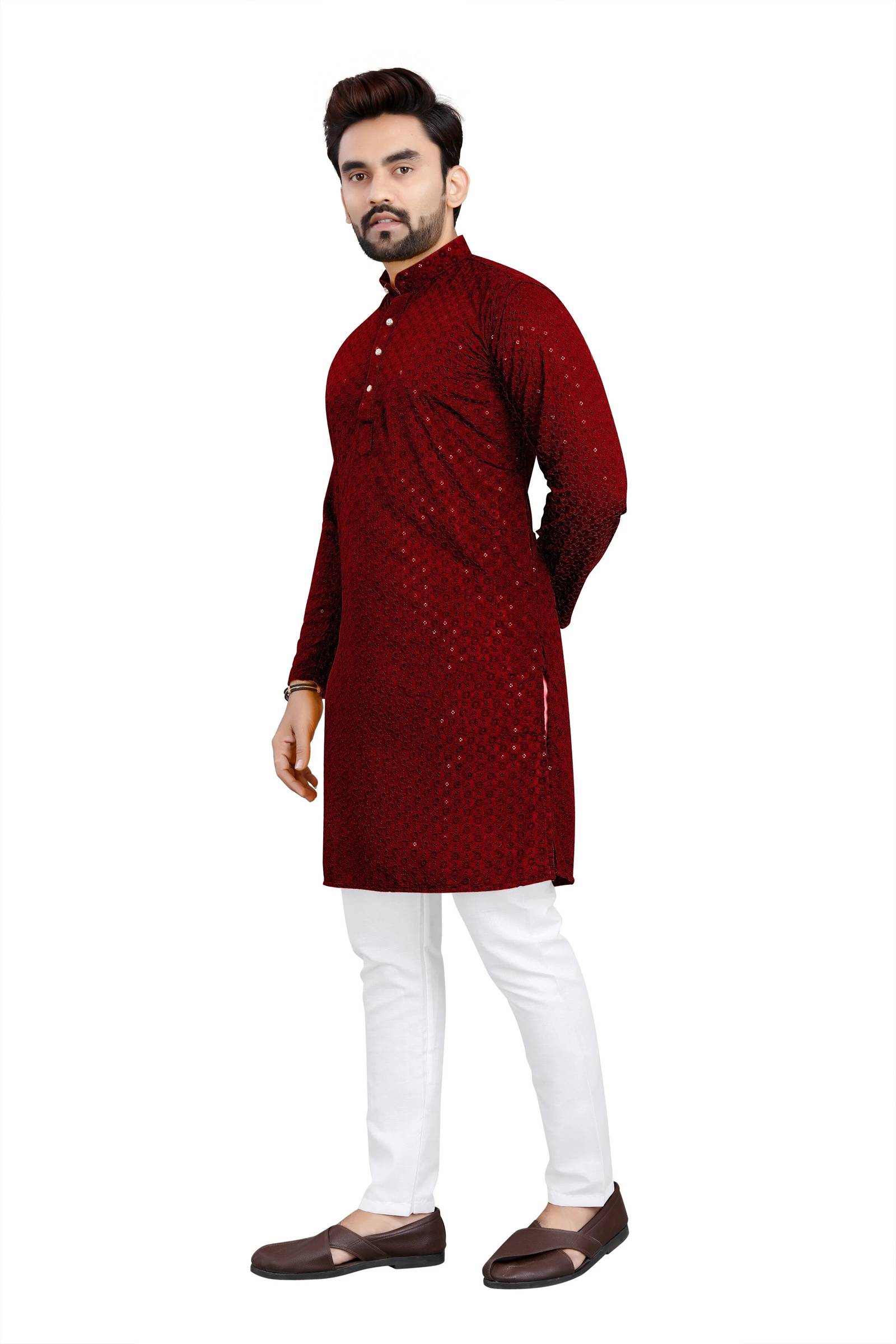 Elevate your ethnic wardrobe with our stunning Chikan Embroidered Work Kurta, made from viscose rayon fabric for a soft and breathable feel. This mandarin collar kurta features a stylish button-down front, full sleeves, and convenient side slits for ease of movement. With two practical pockets on the sides, it combines functionality with elegance, making it perfect for festive occasions or casual outings.