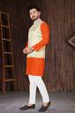 Men Cotton Blend Kurta Pyjama Ethnic Jacket Set