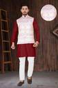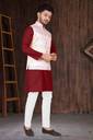 Men Cotton Blend Kurta Pyjama Ethnic Jacket Set