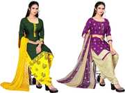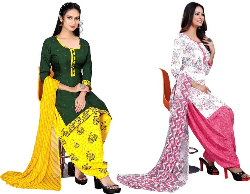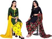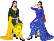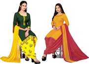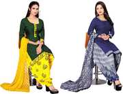 Presenting Comdo Dress materials set with ethnic look. This Crepe suit is beautifully adorned with Print work comes along with solid Crepe bottom and Georgette dupatta makes it appear more adorning. Women can buy this suit to wear for their upcoming festivals, homely functions, parties, kitties, weekend get together. Get this unstitched suit stitched according to your fit and comfort. Team it with stylish accessories to make your looks more beautiful.