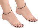 (1 Pair) Adjustable Black Color Round Beads Moti Butterfly Charm Nazariya Foot/Leg Pajeb/Payal Chain Anklets Bracelet Fashion Jewellery Set For Women's And Girl's