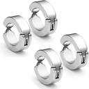 (2 Pair) Trendy Silver Round Shaped Press Non-Piercing Style Clip On Metal Barbell Earring Hoop Bali Stud For Men And Women Metal Hoop Earring, Magnetic Earring