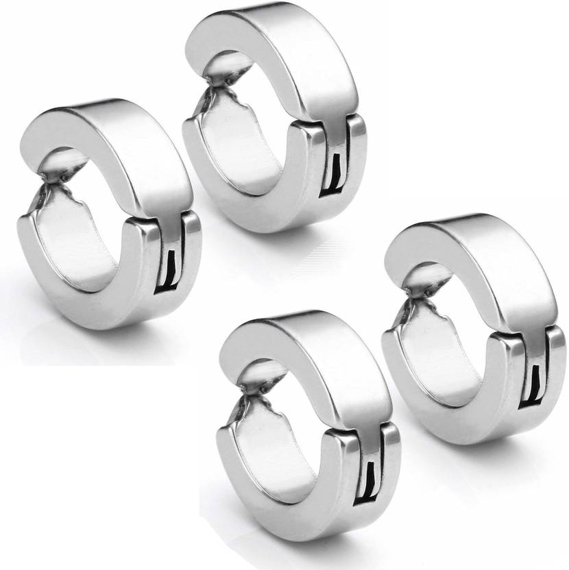 Stylewell (2 Pair) Trendy Silver Round Shaped Press Non-Piercing Style Clip On Metal Barbell Earring Hoop Bali Stud For Men And Women Metal Hoop Earring, Magnetic Earring Metal Hoop Earring
