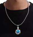Unisex Stainless Steel Illuminati Horus Dragon Blue Evil Eye Nazariya Protection Gothic Demon Skeleton/Skull Head Locket Pendant Charm Necklace With Box Chain