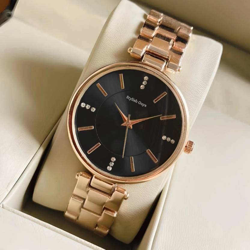 Rose Gold Girls Watch With Black 02 Dial Ladies Watch