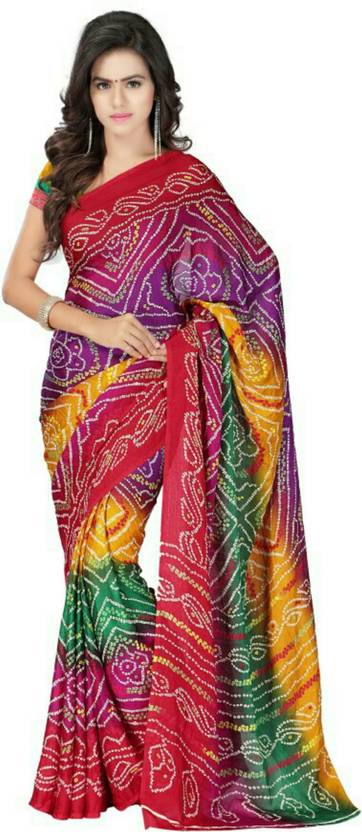 Stylish Sarees Printed Bandhani Georgette Saree (Multicolor)