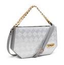 Elevate your style with this chic mauve handbag, designed with a modern silhouette and bold detailing. Crafted from smooth, high-quality leather, it features a striking oversized V emblem at the front for a statement finish. The bag comes with two versatile carrying options: a detachable crossbody strap with contrast stitching for all-day comfort, and a structured top handle wrapped in sleek cord detailing for a contemporary edge. Spacious yet refined, this handbag is perfect for both day and evening wear, offering the ideal balance of elegance and practicality.