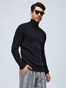 Men Self Design High Neck Cotton Blend Black T-Shirt
