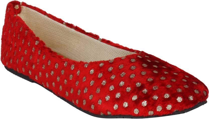 Toni Red & Golden Dots Women Closed Toe Bellies For Women (Red , 41 Euro)