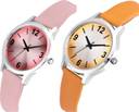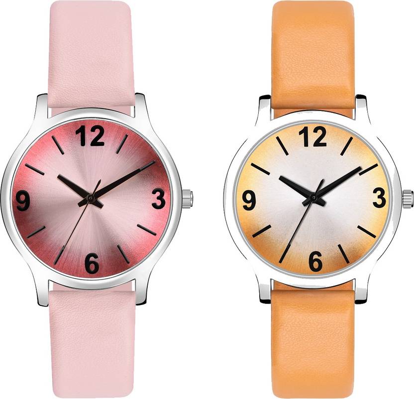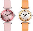 Styllent Analog Watch - For Girls Pink and orange Color Shading Color Leather Strap Pack of 2 Girls watch