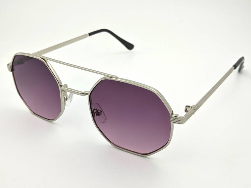 Geometric Full Rim Unisex Sunglasses [ Violet Lens , Silver Frame ]