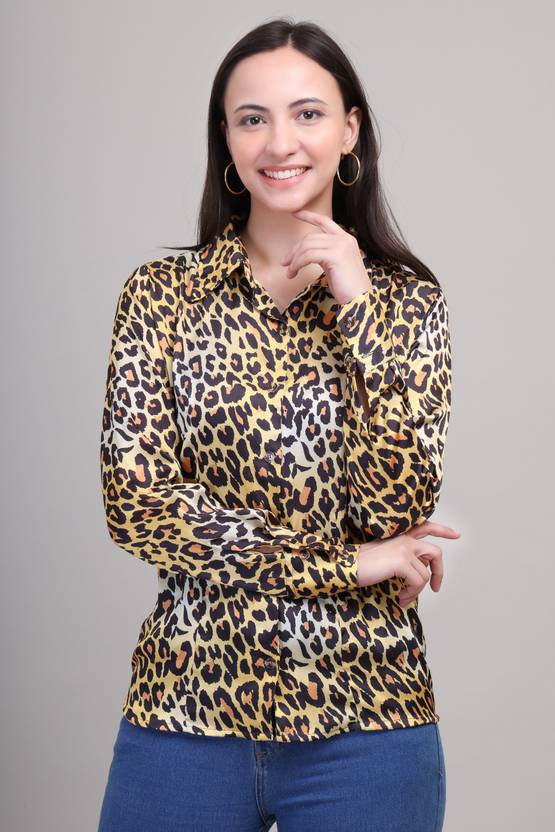 Turn heads with this bold leopard print satin shirt. Designed with a classic collar and button-down style, it combines timeless animal print with a sleek, glossy satin finish—perfect for adding confidence and flair to your look.
