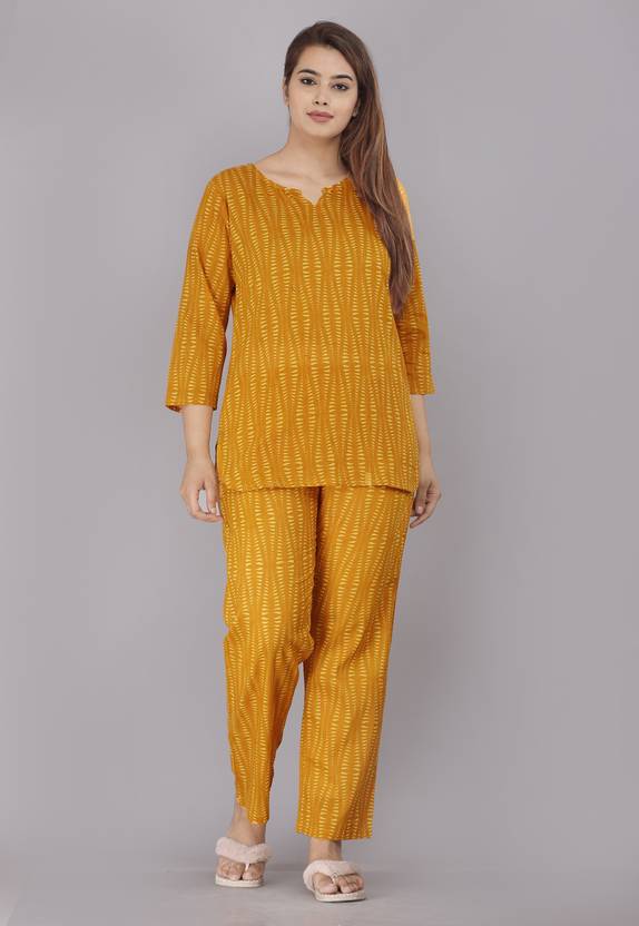 STYLOFUSION Women Printed Yellow Night Suit Set