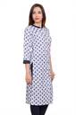 Women Printed Cotton Blend Frontslit Kurta (Red, White, Blue)