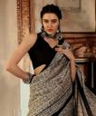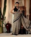 Off white rajasthani folklore printed bhagalpuri silk saree. It has unstitch blouse. Saree Length - 5.50 Mtr, Blouse Fabric Length - 0.80 Mtr.