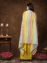 Soild mustard georgatte draped lehenga saree. This lehenga saree has heavy work blouse and printed jacket
