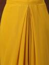 Soild mustard georgatte draped lehenga saree. This lehenga saree has heavy work blouse and printed jacket. Lehenga length-42'' Inch, blouse length-15'' Inch.