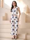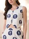 Blue & off white cotton flex floral printed top. Top has front button placket on it with u-neck and Seeveless. Printed cotton flex pant