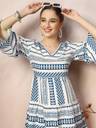 Rayon tribal printed dress with v-neckline and flared sleeves. Pair it with casual jewellery and sneakers or flats to flaunt yourself