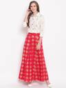 With this gorgeous combination of off-white and red shirt-skirt set, your look can be traditional yet stylish. You can wear it at any festival and parties because the look is both contemporary but trendy. Rayon fabric makes it comfortable. Skirts have elastic in back. This Product Size's :- Kurta, XX-small= 32 (Inch), X-small= 34 (Inch),Small= 36(Inch),Medium=38(Inch), Large=40(Inch), XL=42(Inch), XXL=44(Inch), Bottom Size :- XX-small= (Fit 22 inch To 44 Inch)X-small= (Fit 24 inch To 46 Inch),Small= (Fit 26 inch To 48 Inch) Medium=(Fit 28 inch To 50 Inch), Large=(Fit 30 inch To 52 Inch), XL=(Fit 32 inch To 54 Inch), XXL=(Fit 34 inch To 56 Inch), Bottom Length :- 40(Inch), IMPORTANT NOTE :- Please confirm your size before ordering the product using Size Chart enclosed with the product.