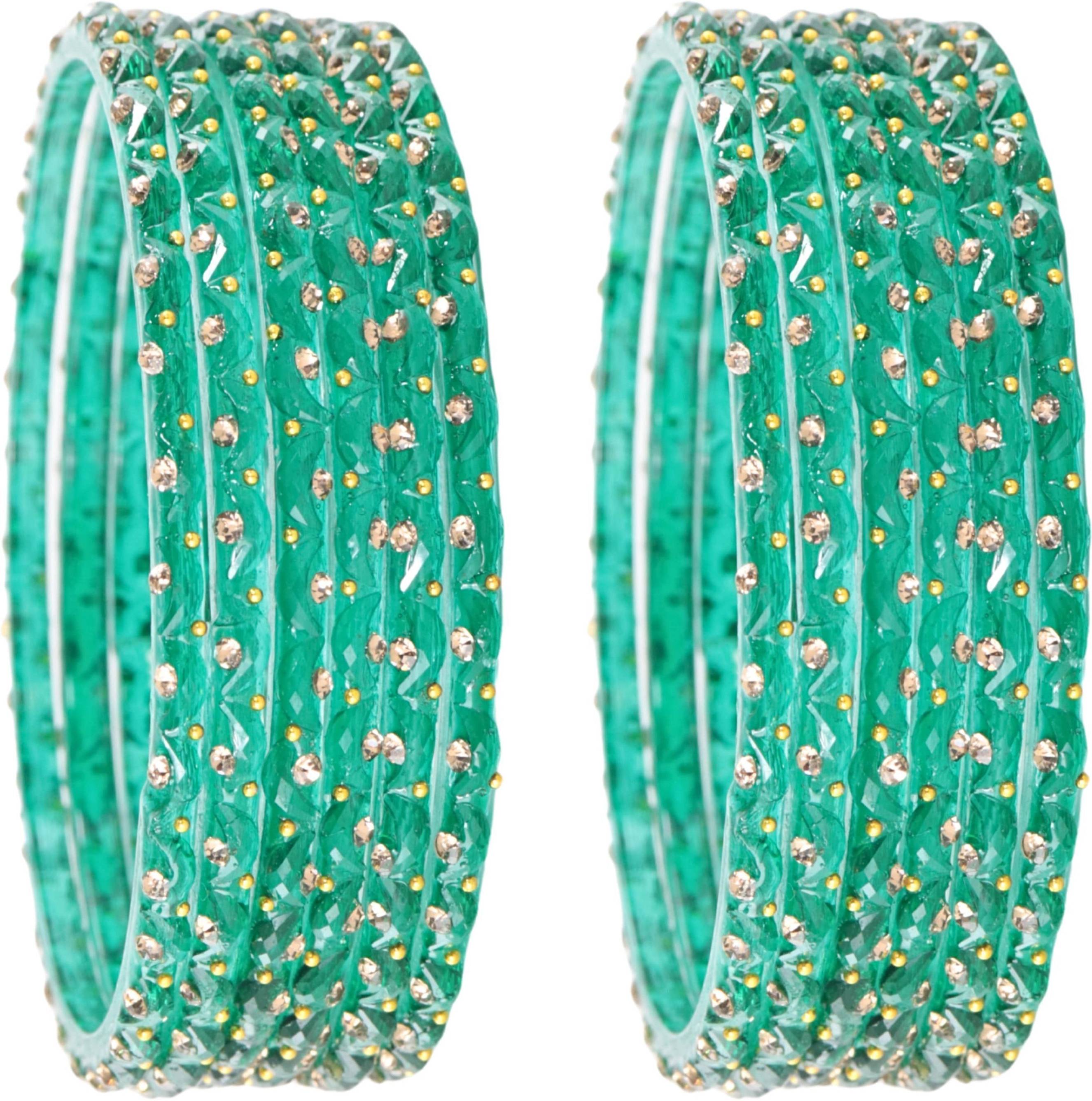 STYOLLO by LAVAZZA Stylish Designer Glass Bangles Set For Women & Girls, Studded With Zircon Stones, Golden Pearls & Chand Shape Design, Is A Premium-Quality Ethnic Bangle Set Perfect For Weddings, Festivals, Parties, And Everyday Wear, Crafted With Durable Glass And Intricate Detailing To Complement Sarees, Lehengas, Salwar Suits, And Indo-Western Outfits, While Also Making An Ideal Gift For Raksha Bandhan, Diwali, Karwa Chauth, Birthdays, Anniversaries, And Other Festive Occasions; These Trendy, Lightweight, And Elegant Glass Bangles Reflect Fine Craftsmanship, Ensuring A Comfortable Fit And Long-Lasting Shine When Handled With Care-Store In A Soft Pouch Or Box, Avoid Contact With Water, Perfumes, And Harsh Chemicals, And Gently Clean With A Soft Cloth To Maintain Their Beauty; STYOLLO By Lavazza Combines Traditional Charm With Modern Style At An Affordable Price, Making This Bangle Set A Must-Have Accessory For Women Who Love Ethnic Jewelry, Party Wear Bangles, Designer Bangles, And Fashion Bangles, Helping You Stand Out In Elegance And Grace.